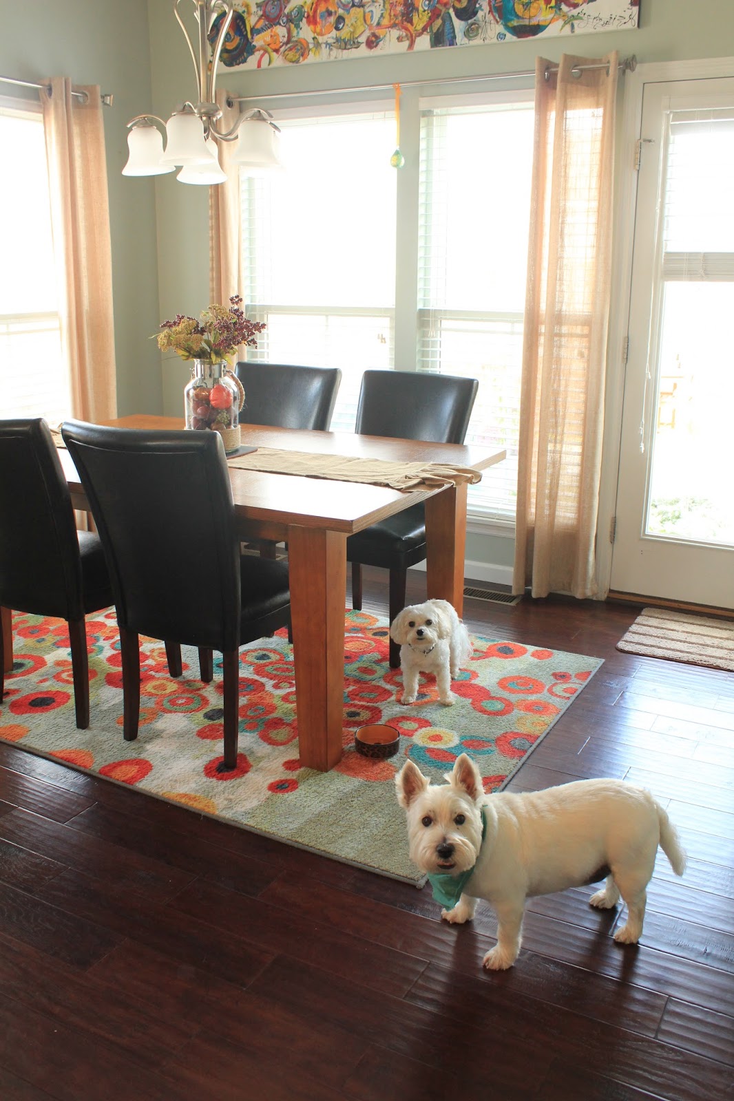 The vinyl cut outs were made by a friend here in New Town. She made the Hello sign on my front door, too. One talented girl! My dining area with my favorite decorations: Truman and Wilson! They followed me all around while I was taking pictures. Their patience was finally rewarded!