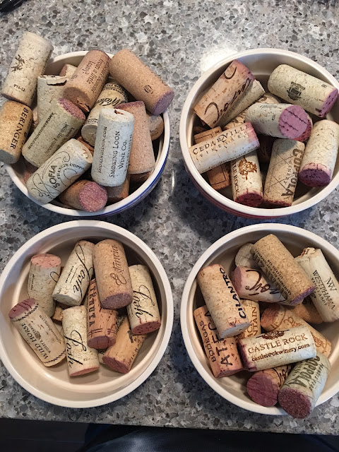 We have an abundance of corks in our home and I love to use them in craft projects! My daughter and I made this adorable pinboard of cork at Christmas one year, my husband made my jewelry holder and I have created a lot of ornaments. We made a wreath of corks that has long been gone but it had a special place in our home in Jefferson City.