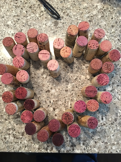 First, I separated the corks by color. Some wines soak into the cork better than others, for many reasons, one being how long the wine has been corked! I wanted an ombre look to the wreath, so I sorted them into four piles.